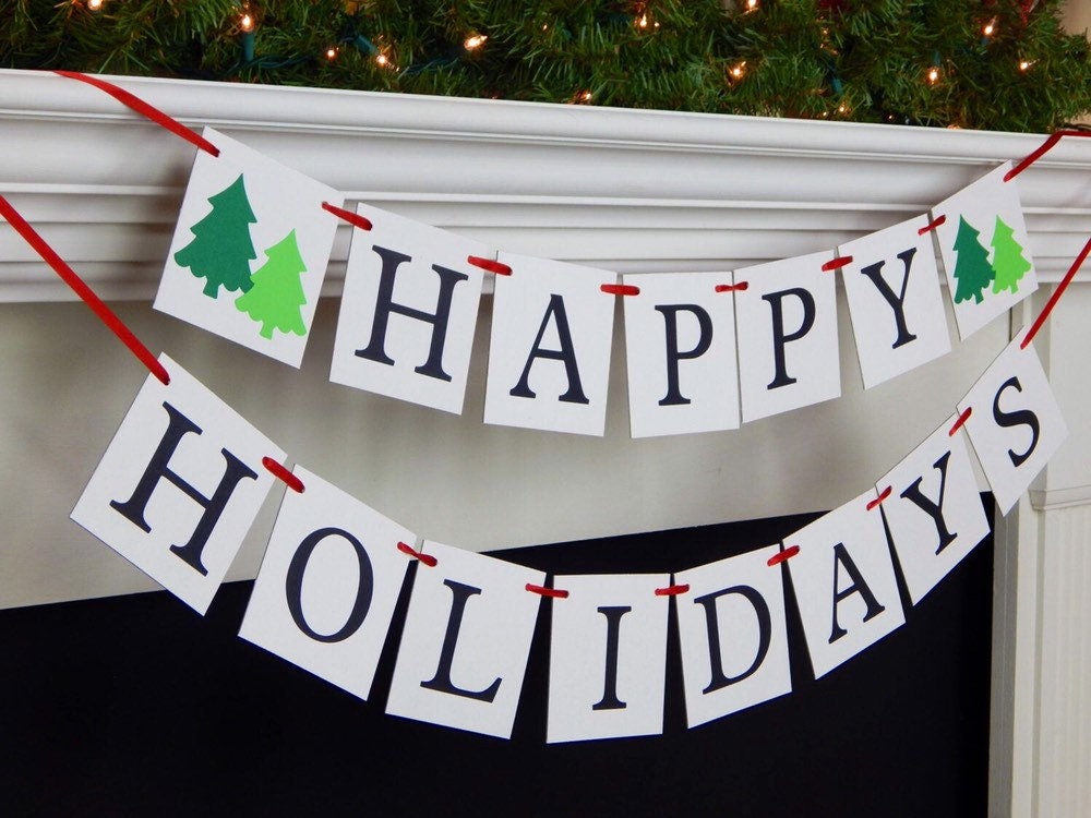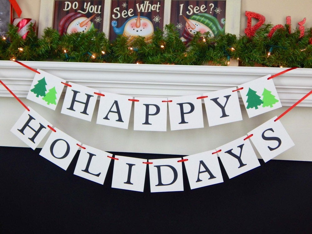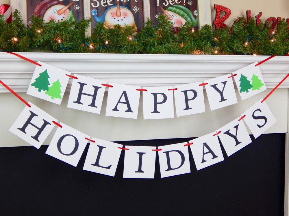 Merry Christmas to all with this adorable Merry Christmas banner. The added evergreen trees gives this holiday banner a traditional Christmas look with some personality.