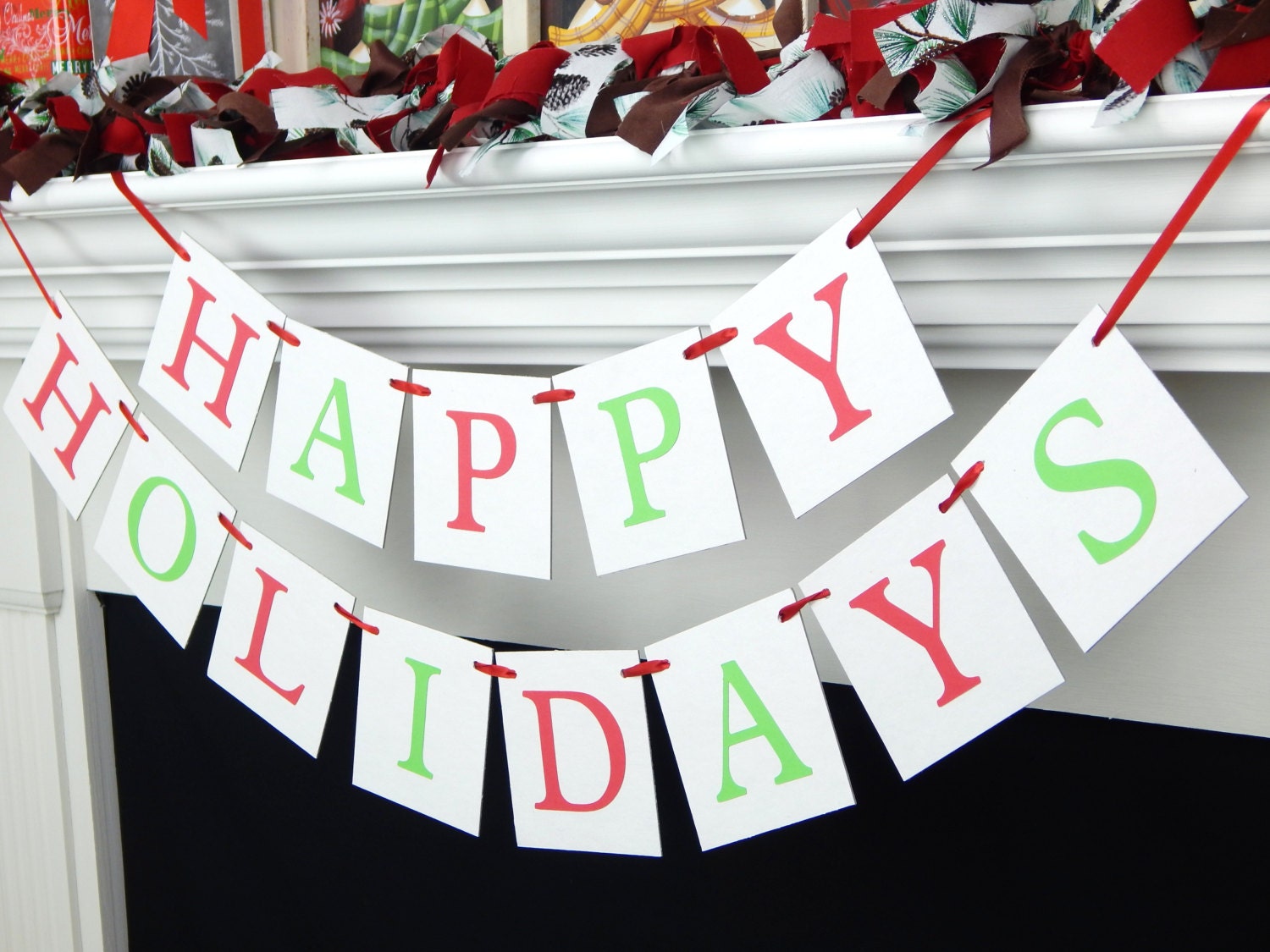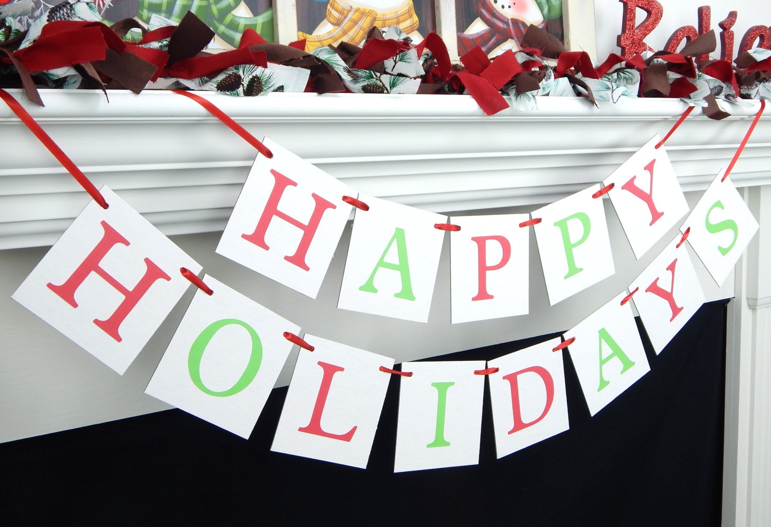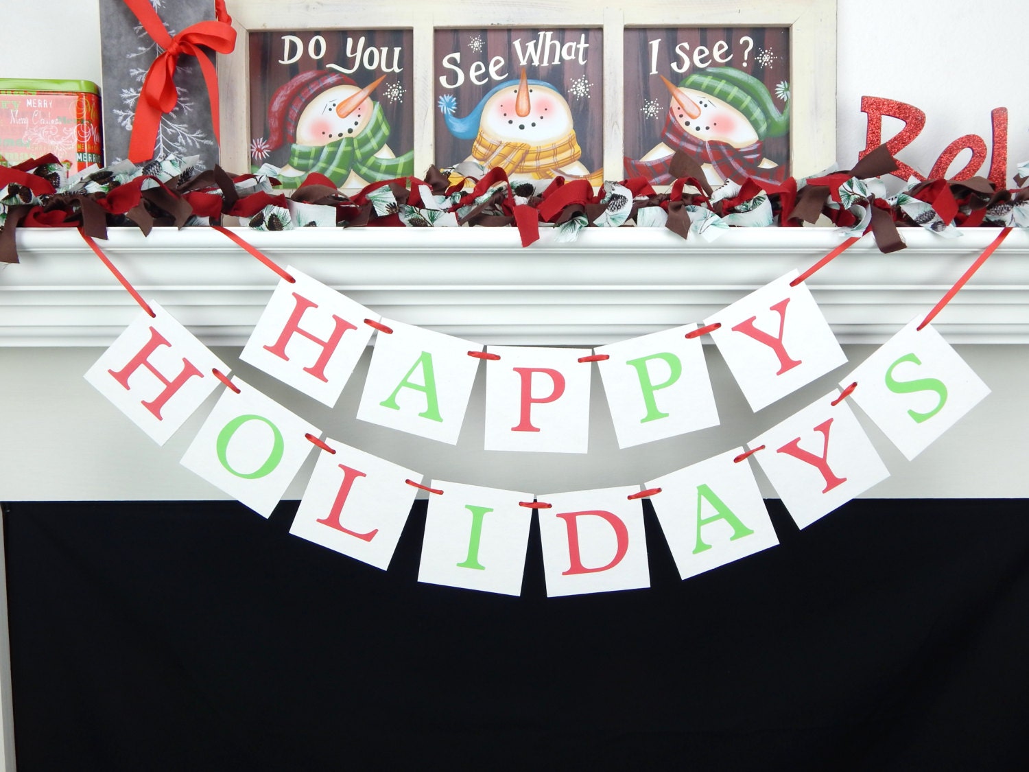 Hang along your mantel to brighten up your holidays. This Happy Holidays banner is perfect for sprucing up your holiday party decorations. Give as a gift as well.