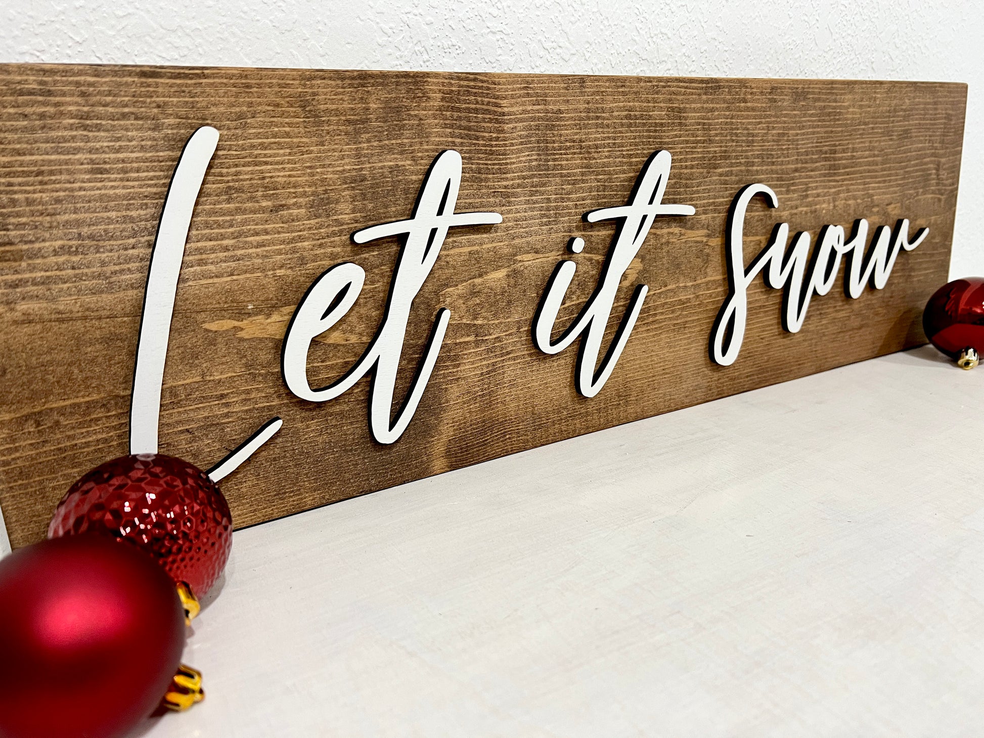 Let it snow sign, Christmas decorations, 3D holiday decor, rustic wood signs, living room wooden sign wall hanging, shelf and mantel decor