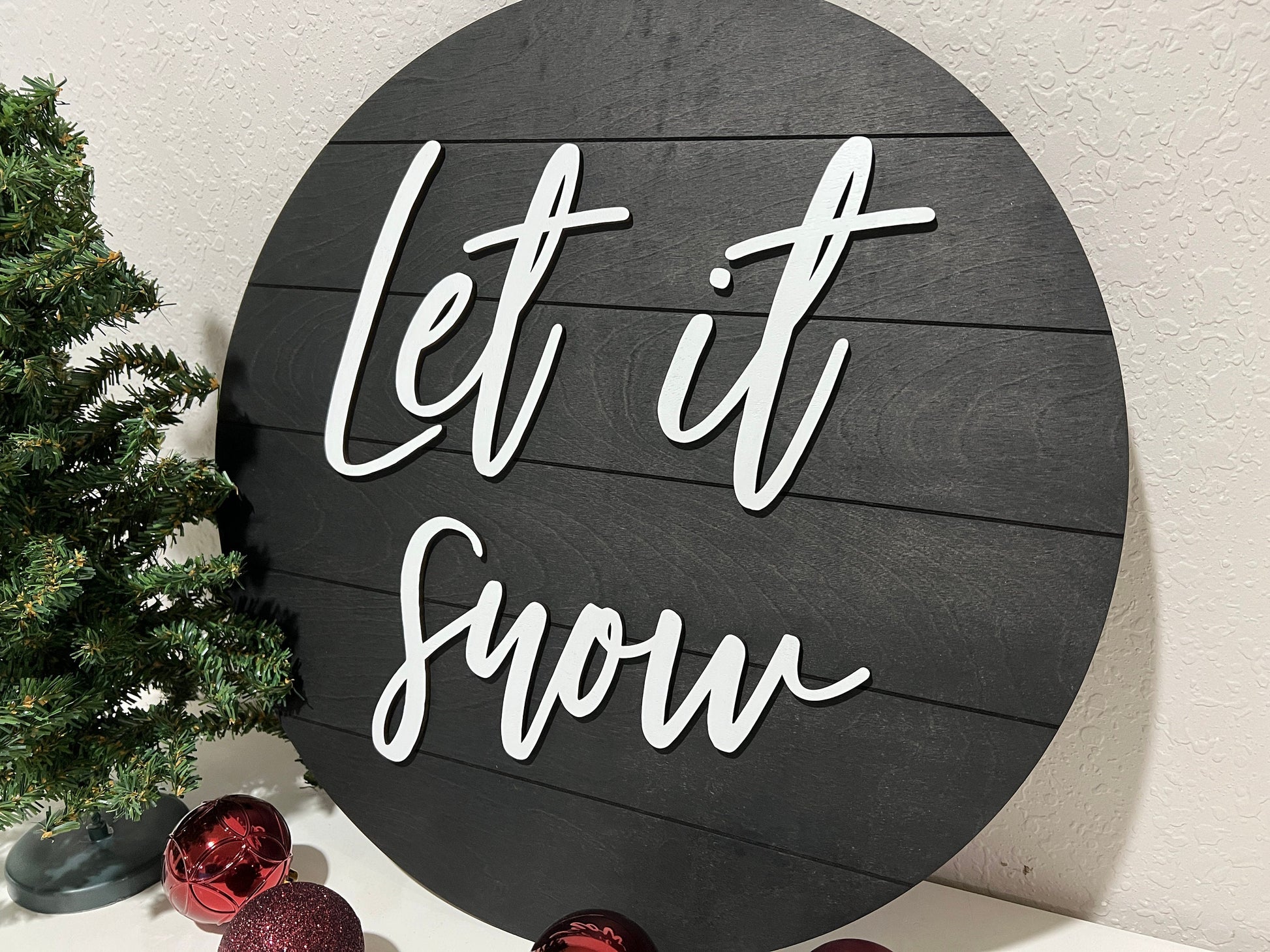 Let it snow sign, Christmas decorations, 3D holiday decor, shiplap wood signs, living room wooden sign wall hanging, black mantel decor