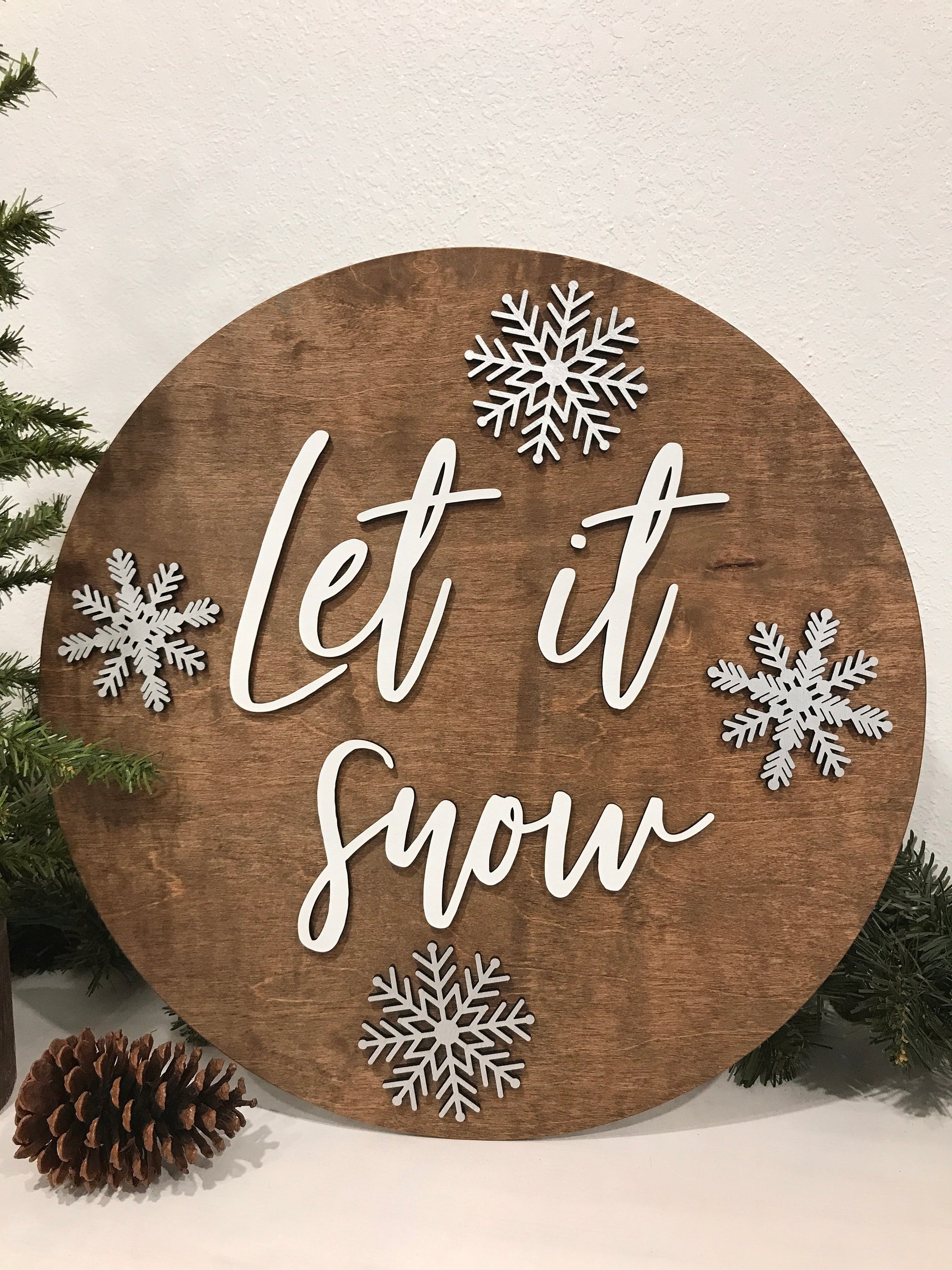 Let it snow sign, Christmas decorations, 3D holiday decor, Snowflakes wood signs, living room wooden sign wall hanging, silver mantel decor