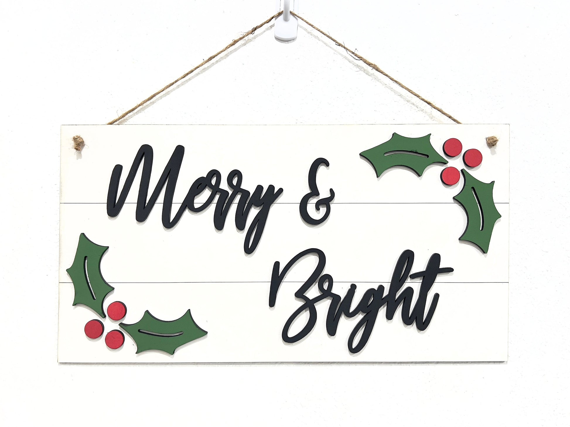 Merry & bright sign, shiplap farmhouse holiday decor, country winter signs, 3D rustic Christmas sign, Christmas wall hanging, door hanger