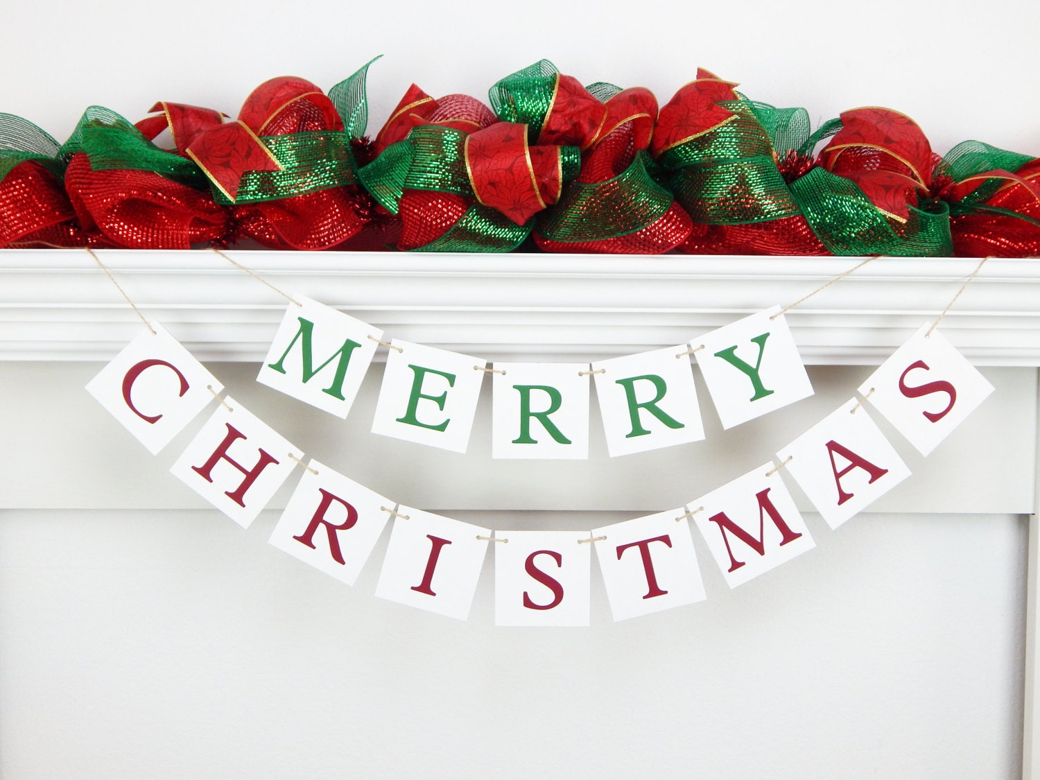 This MERRY CHRISTMAS banner is the perfect holiday decoration for keeping the spirit of Christmas close to heart this year. Hang along your mantel, shelf, Christmas party tables, etc.