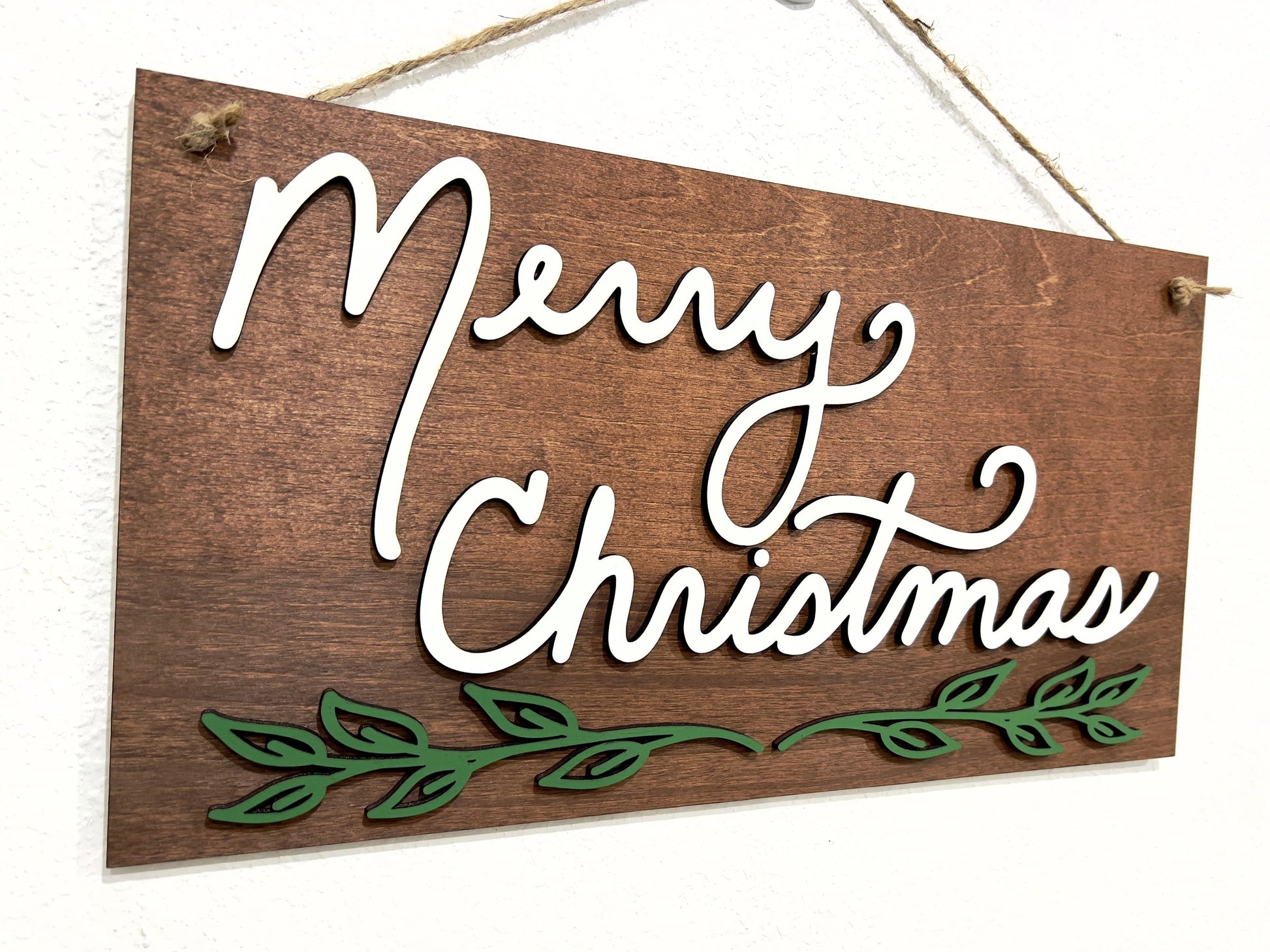 Display your own Merry Christmas sign throughout the winter season. Perfect for rustic farmhouse style holiday home decor. 3D style lettering.