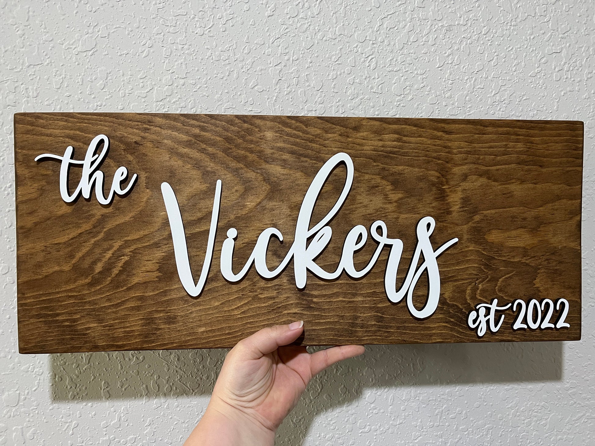 3D family name sign with wedding established date. Perfect for bridal shower gifts and wedding gifts for the bride and groom, 1st anniversary gift or Christmas gift. Get this Family sign customized with date of your choice. Set on your mantel or hang on the wall.