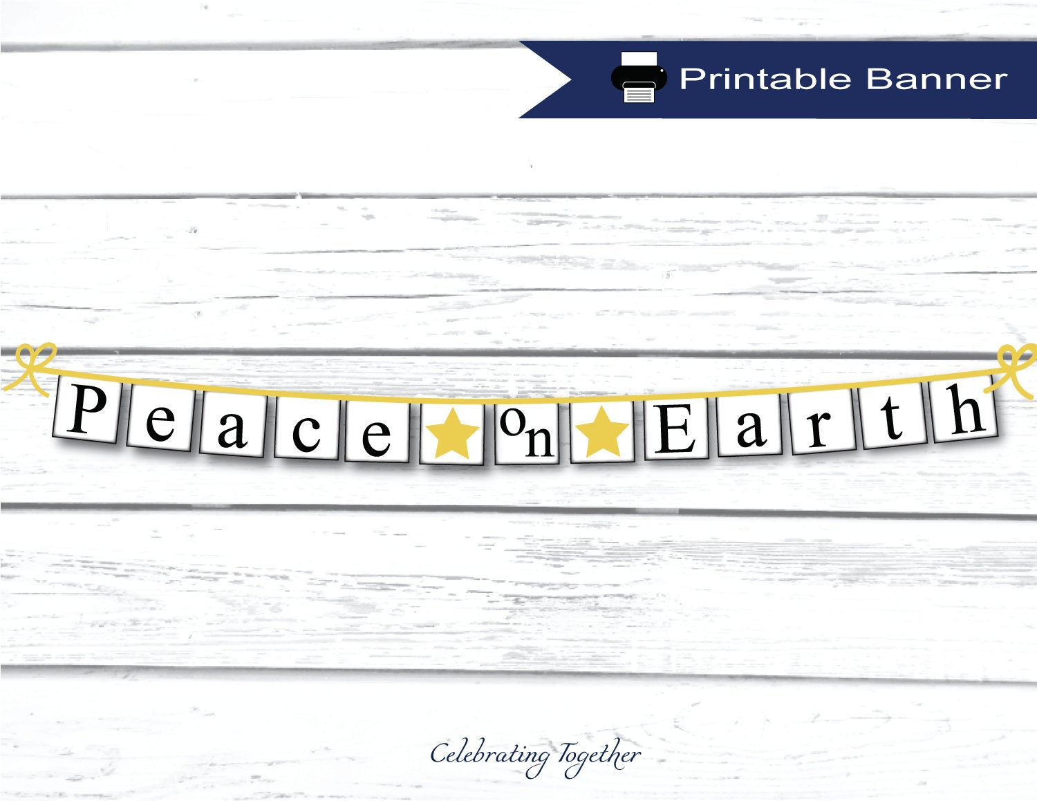 PRINTABLE Peace on Earth Banner - Gold Stars