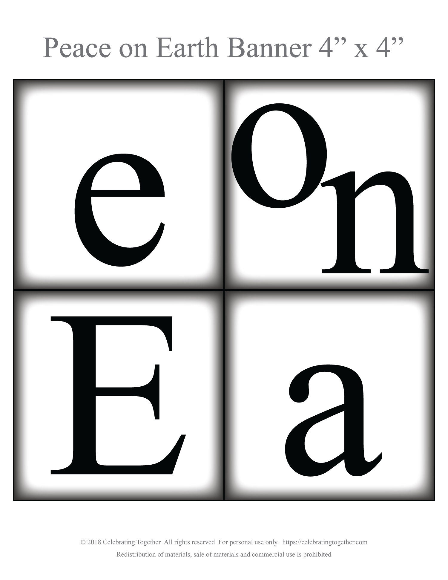 This Peace on Earth banner is perfect for sprucing up your winter and holiday decorations. Designed on 4" x 4" white cardstock with black lettering and gold stars. Be creative and add your choice or ribbon color, string, yarn, twine, etc. Easy to diy this printable banner. Just print, cut and string.