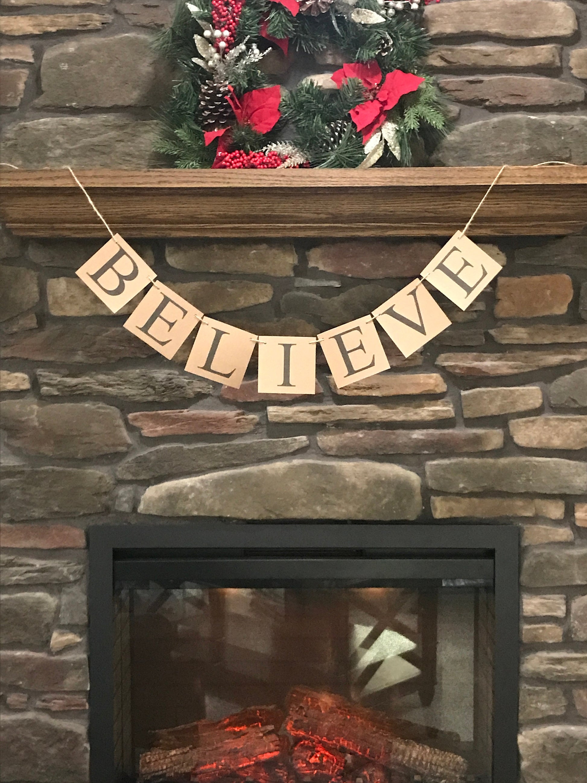 Tie all your Christmas decor together with the rustic, cozy feel of this Believe banner. Your family and friends will love the inviting space you create to welcome them. They’ll be thrilled to be home for the holidays. Perfect compliment to your Christmas and holiday decorations you’re already using.